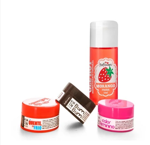 Experimente sensações inesquecíveis. Kit inclui: Gel Aromatizante Morango 15ml. Cremes Lubrificantes 3,5 g: Louco Desejo - Creme Excitante feminino. Loucura - Creme Anal Unissex. Delírio - Creme Excitante Unissex, esquenta e esfria.